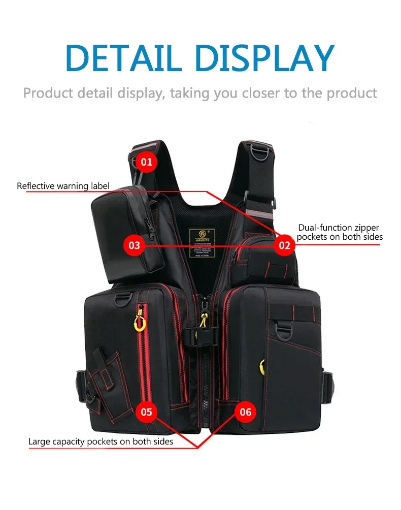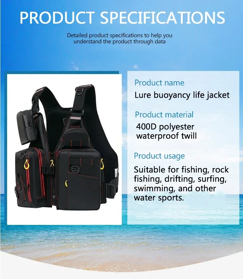 Lure Life Jacket Rock Fishing Vest Raft Sea Fishing Adult Multi-Pockets Large Buoyancy Sea Fishing Waterproof Oxford Cloth