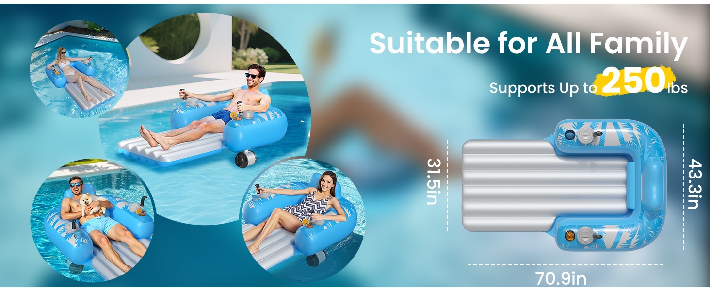 Comfortable Design: Ergonomic recliner-style for relaxing in the water.