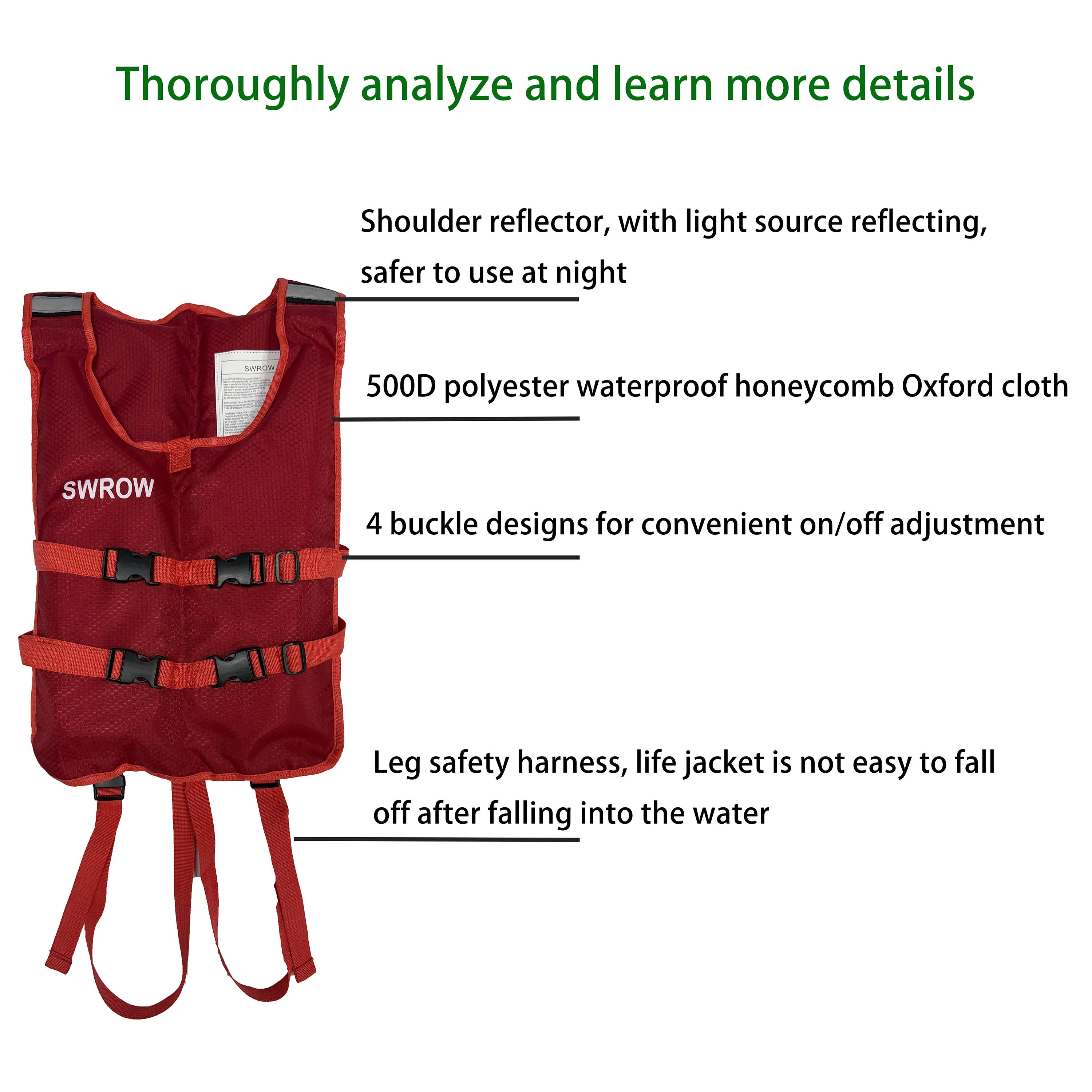 SWROW Adult child Kayaking Life Jackets Women Paddle Life Vest Men Kayak Vest PFD Safety Drifting Boat Raft Floating CE Approved
